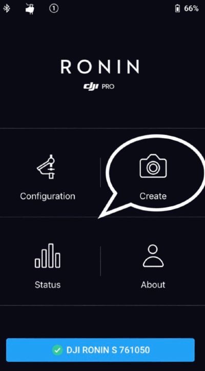 DJI Ronin アプリがインストールされたスマホ・タブレットのBluetoothをONにして、Ronin−S本体を起動後、DJI Ronin アプリを立ち上げてください。