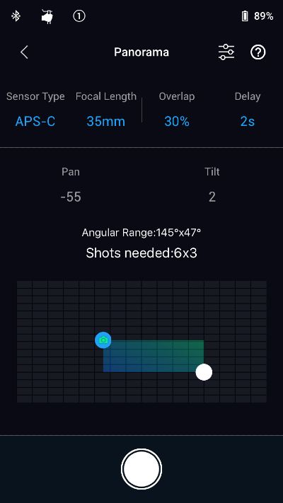 下半分に表示されるバーチャルスティックを使って、Ronin-Sの遠隔操作も可能です。