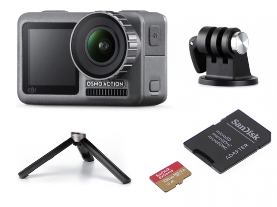 特にハンドグリップを使った動きながらの撮影と三脚を使った自撮りや定点撮影に対応した PGYTECH製ミニ三脚、またとない貴重なシーンの撮影に欠かせない高性能SDカードを揃えたお買い得なセット品がオススメです!