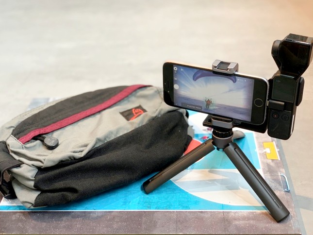 別のスタッフは、こんな感じで Osmo Pocket を登山に持っていっているようです。