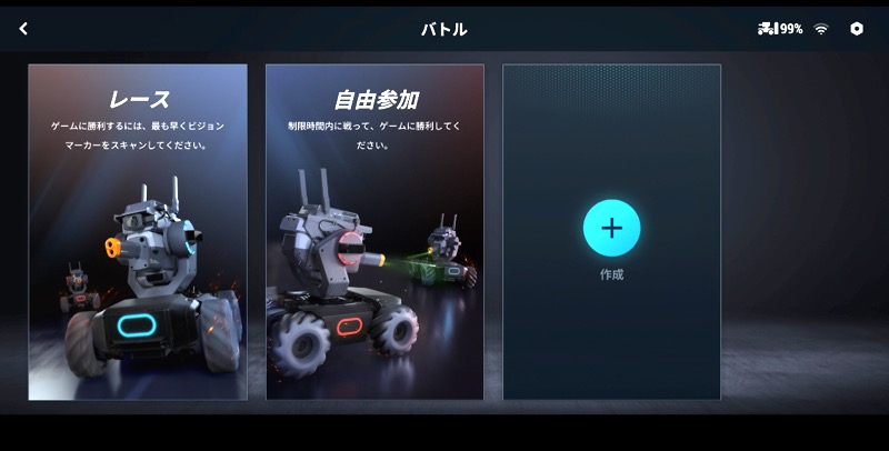 「RoboMaster」アプリを立ち上げると3つのモードが表示されます。