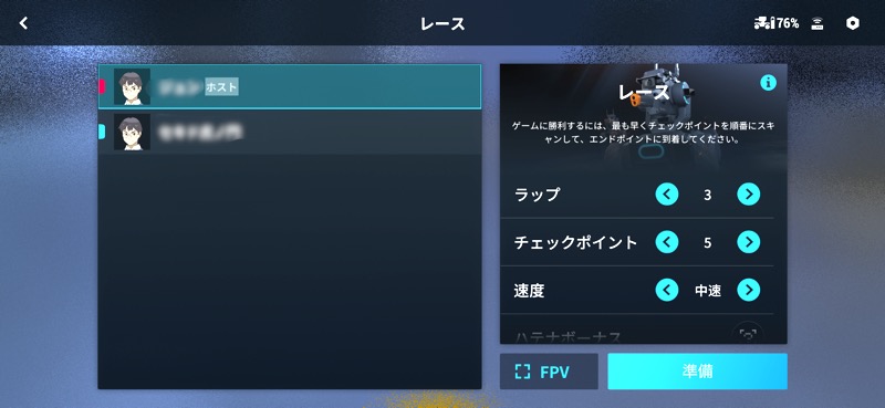 メンバーはすでに同じルーターで接続しているので、1人がレースモードを選択し、それに続いて同様にレースモードを選択していくだけです。