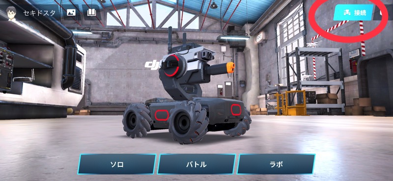 1. 「RoboMaster」アプリを立ち上げ、TOP画面から接続を選択