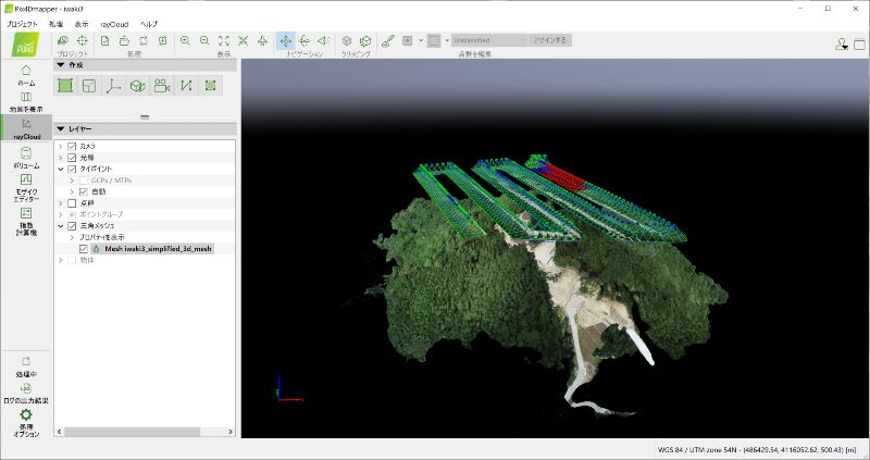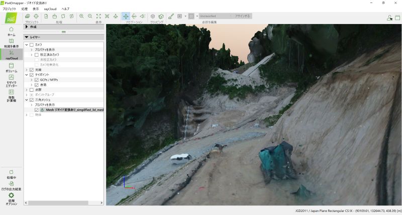 今回の現場で使用した座標は評定点が「JGD2011」、Phantom 4 RTK が「WGS84」を基準にしております。
