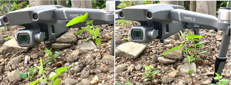 Mavic 2 シリーズは機体の全高が低いので、着陸時に機体の底面が地面スレスレの位置に来るんですね。