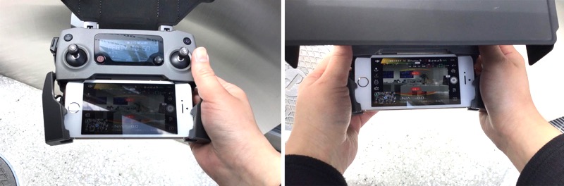 ドローンの送信機(コントローラー)に、タブレットを装着するアイテム。