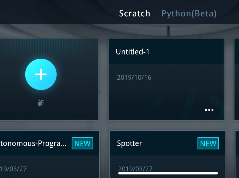 次の画面ではScratchかPythonの選択、新規プログラミングフォルダの作成画面が出来ます。