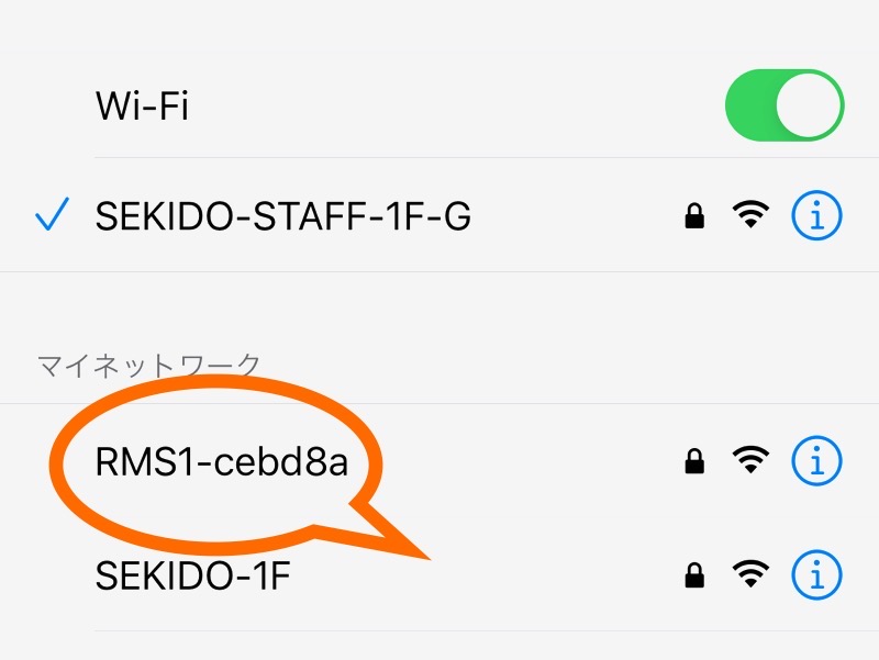 通信可能なWi-Fiの一覧に『RMS1〜〜』というのが表示されますのでそちらを選択、先程のアプリを開きます。