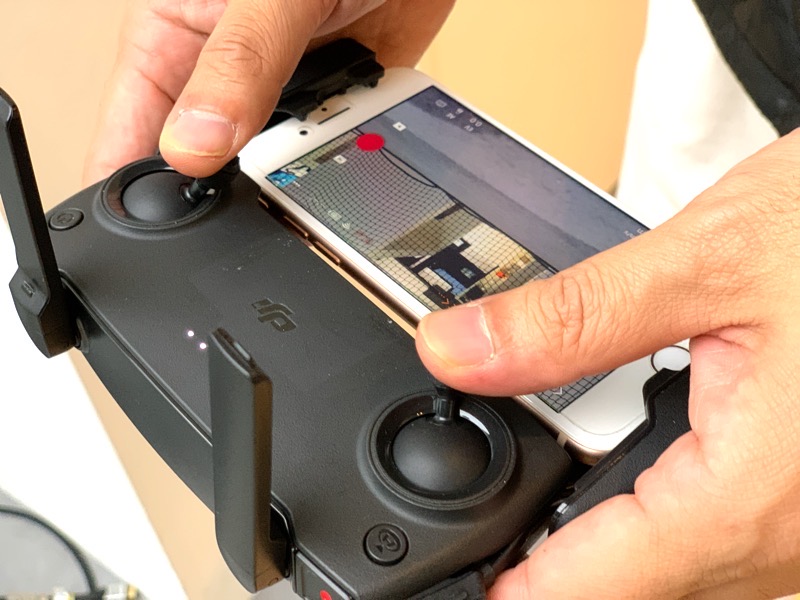 1. バッテリー残量が 50%以上ある事を確認してから、機体と送信機の電源を入れ、スマートフォンを接続します。