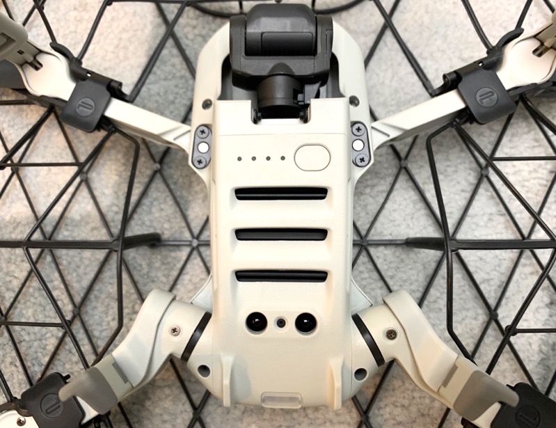 機体底面には赤外線センサーとカメラセンサーを搭載。このセンサーが DJI と他のドローンメーカーが一線を画す理由の1つです。