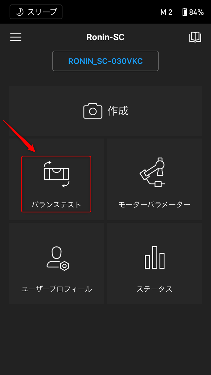 アプリの案内にしたがって、Ronin-SC を傾けて持ちます。