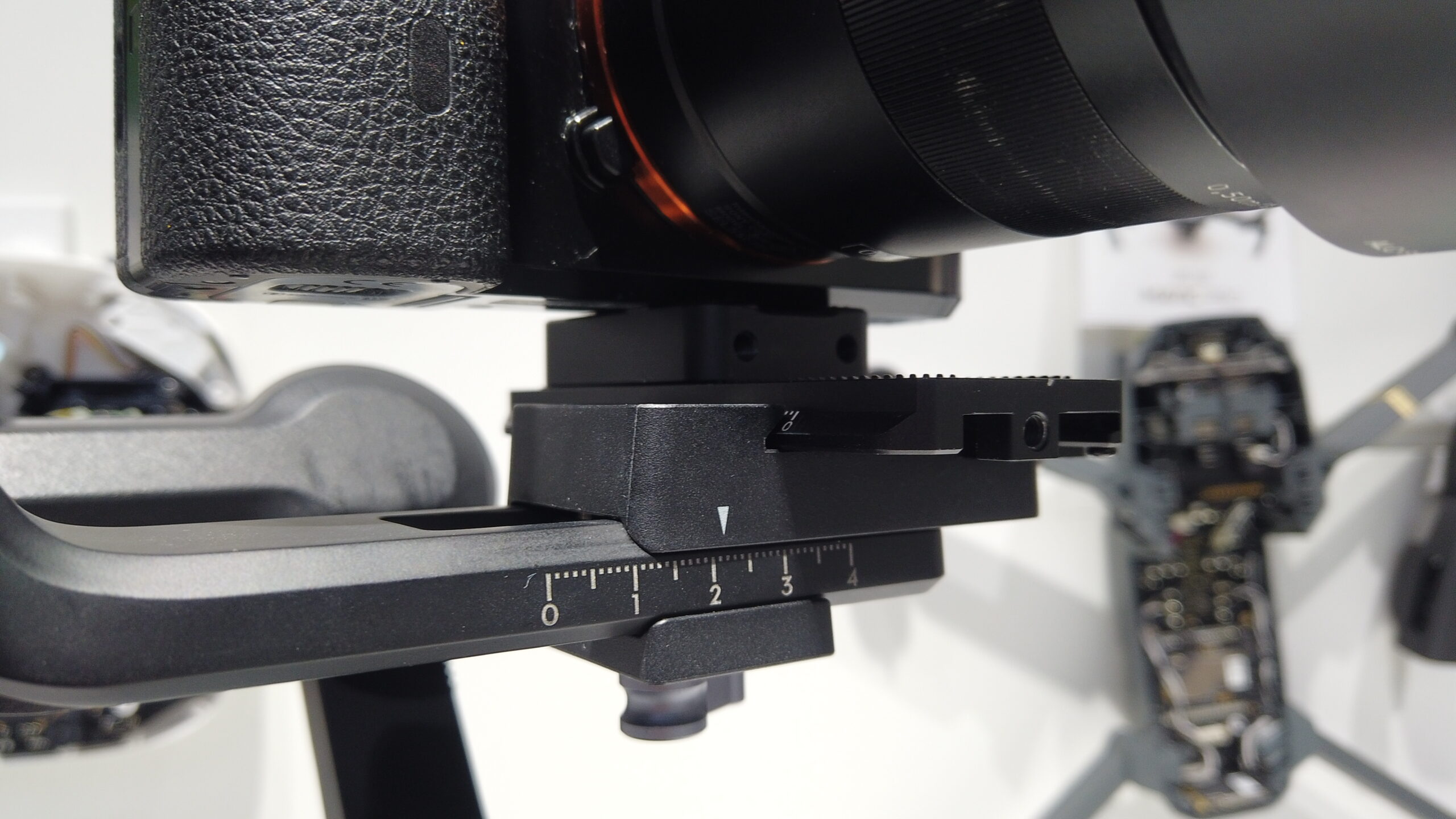 カメラが水平になったら左右バランスはその位置を保ったまま、ダブテールプレートのスライダー位置までカメラの前後位置を戻します。
