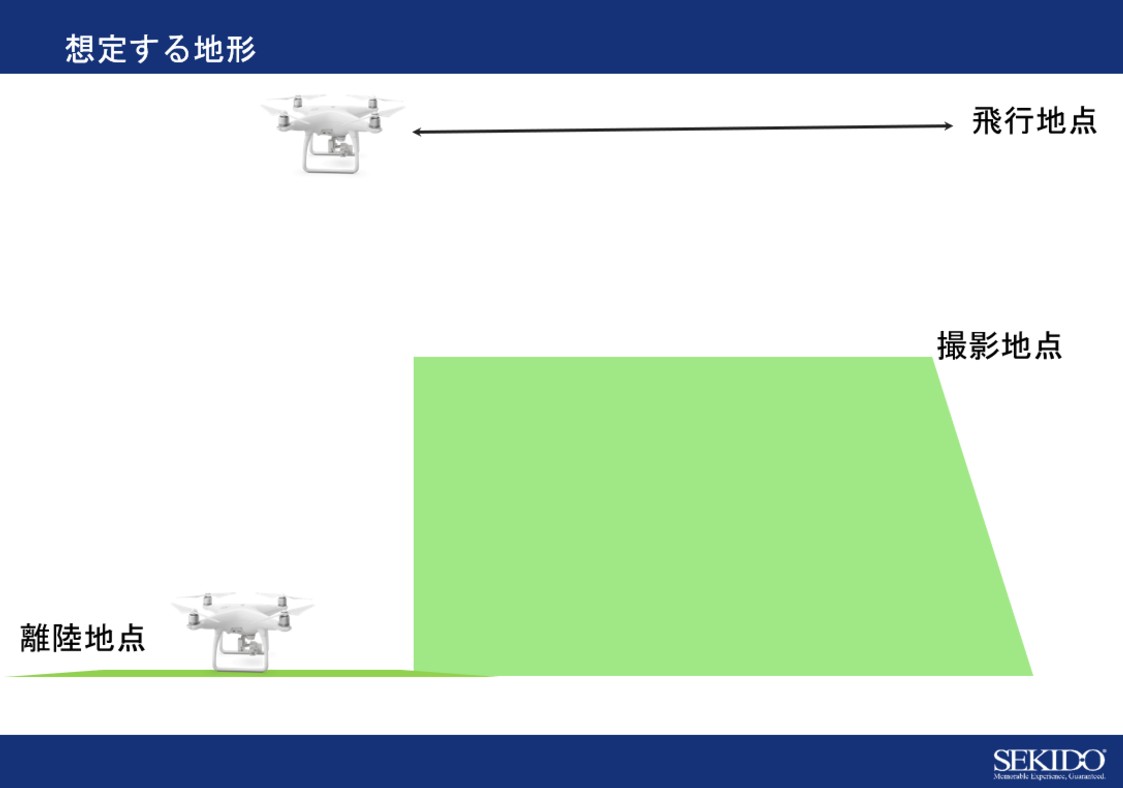 利用環境としては、以下の図のように撮影地点(撮影対象)の高度とドローンの離陸地点の高度に差異がある場所で、役に立つ機能となります。