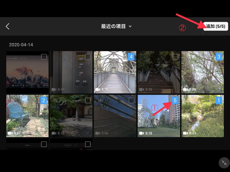 ※サムネイル左上の「● SHOT」が必要な動画数です。