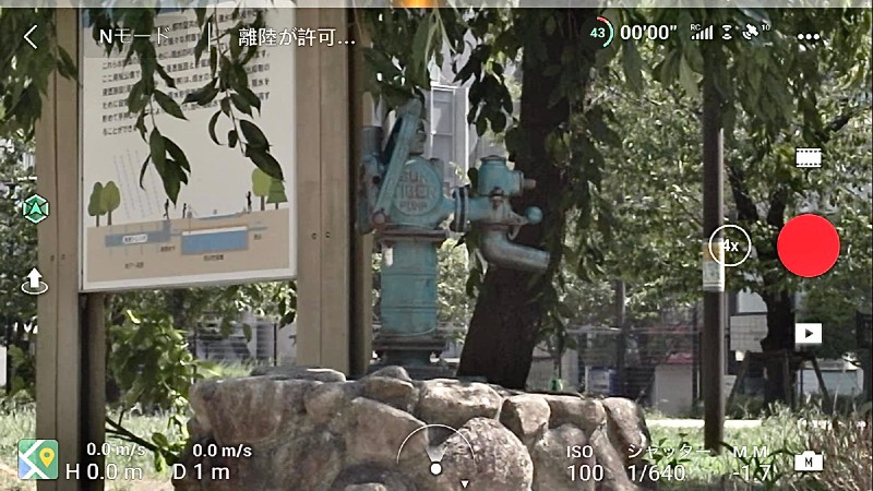操縦画面右側のズームボタンをタップすることで最大4倍の可変ズームが可能になります。