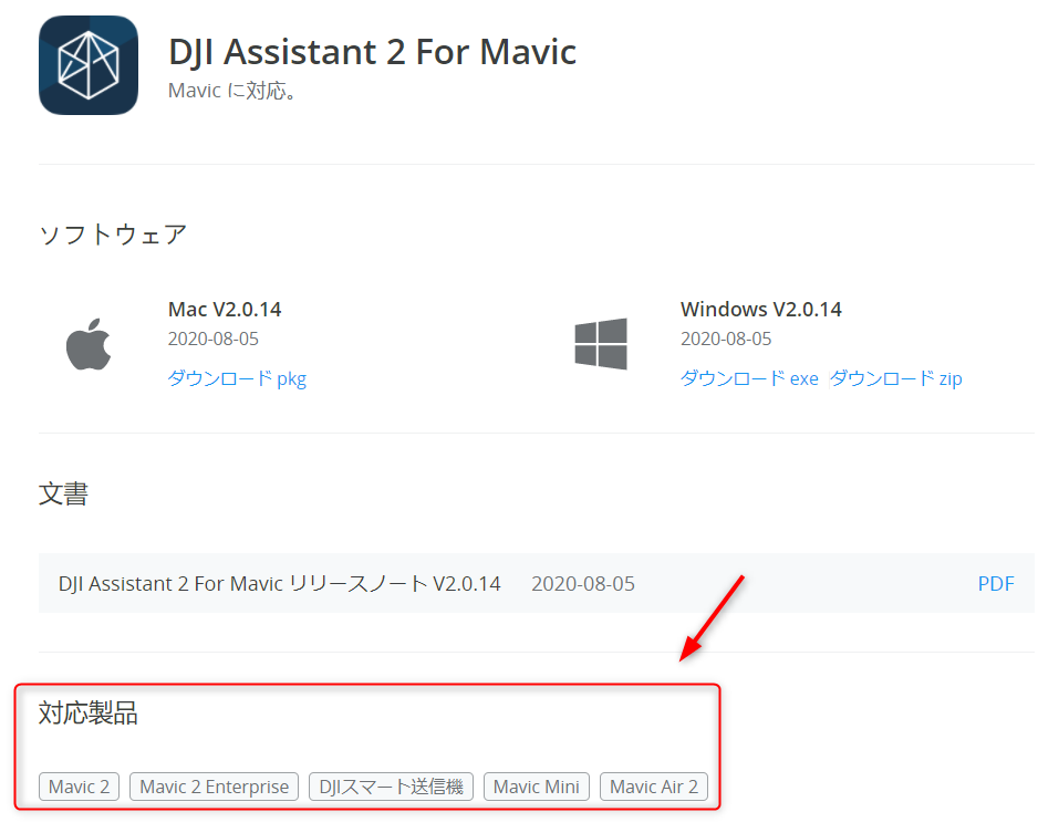 DJI ダウンロードセンター:https://www.dji.com/jp/downloads