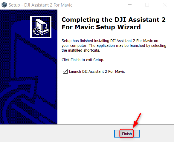 Finishをクリックすると、自動でDJI Assistant 2 が起動します。