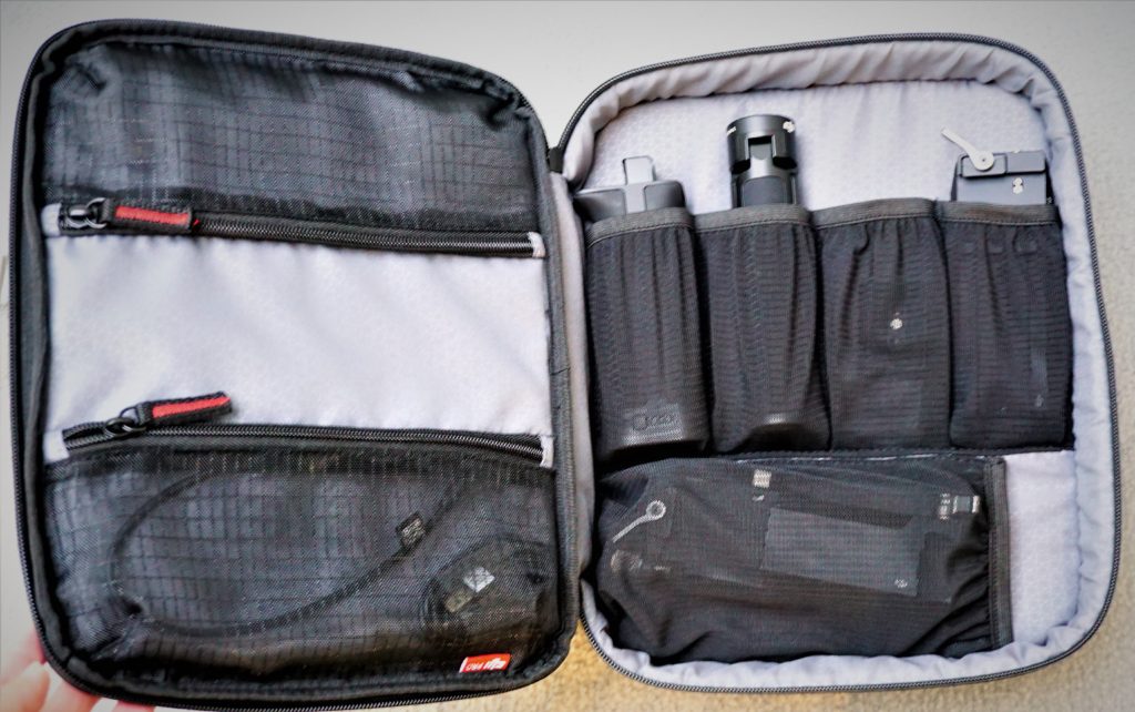 ある程度サイズに余裕を持った作りで、カメラのレンズフィルター、バッテリーなどを入れてもよさそうですね。