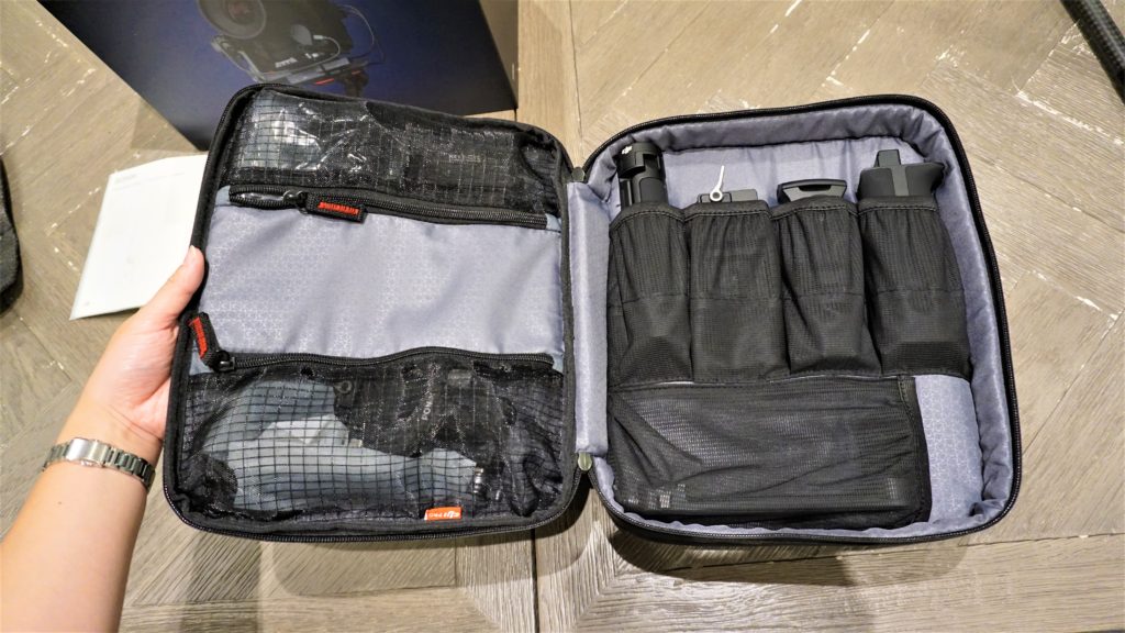 一段目です。カメラを取り付けるプレートや三脚、スマートフォンホルダーなどが入っています。