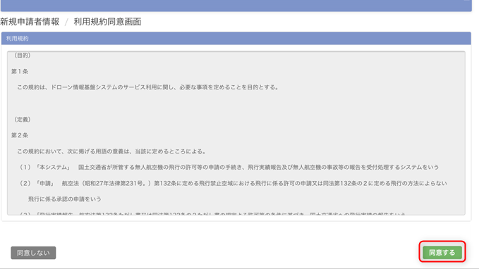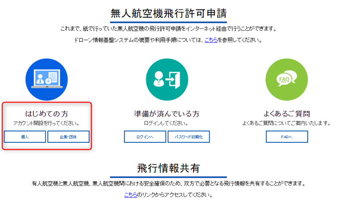 アカウント作成と、飛行させたい無人航空機、操縦者情報を登録します。
