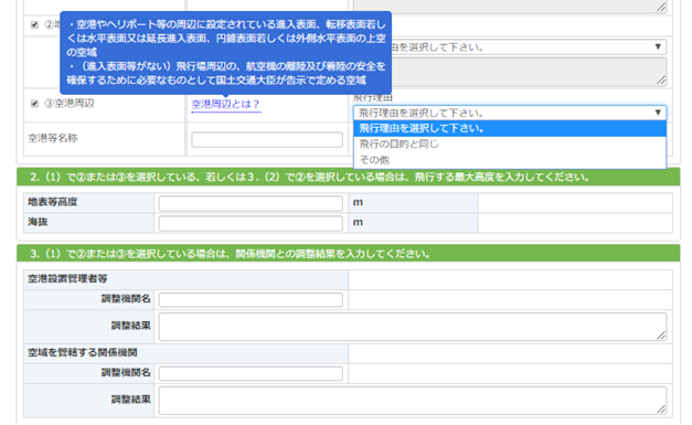 「高度150m以上の飛行」「空港周辺での飛行」に該当しない場合、入力は不要です。