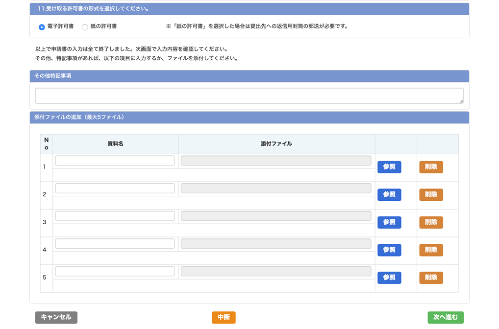 また、受け取る許可証の形式で紙を希望される場合は返信用封筒を郵送する必要があります。