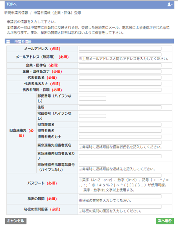 続いてサイト上の案内に従い、以下のステップで申請していきます。