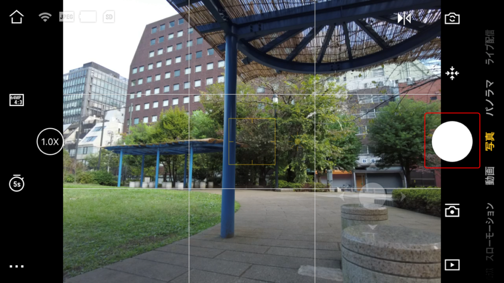 言うまでもないかもしれませんが、シャッターボタンは右側のマルです。