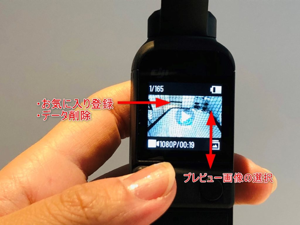 プレビュー画面では、上下のスワイプで撮影データの切り替えが、左から右のスワイプで、お気に入り登録とデータの削除が可能です。
