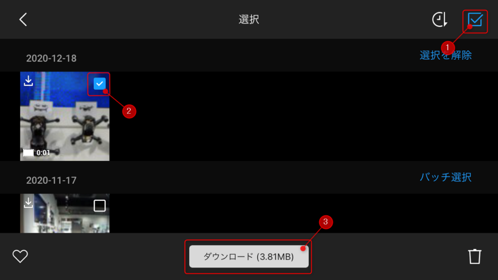 スマートフォンに取り込みたいデータを選択して、ダウンロードしましょう。