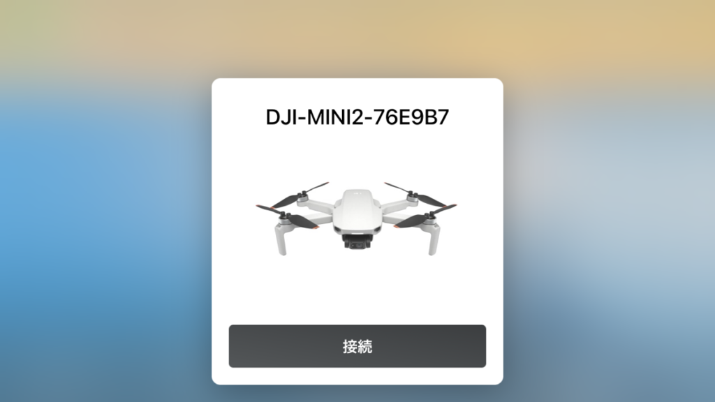 この状態で、DJI Fly アプリを起動するとコチラの画面になりますので、「接続」をタップしてください。