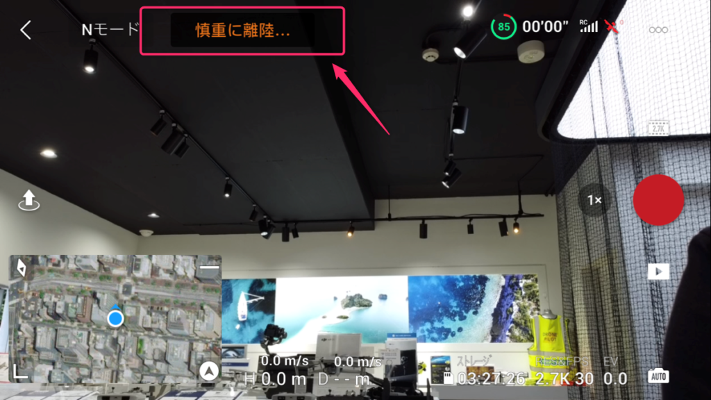 カメラビュー画面です。画面上部のフライトモード表示のすぐ右側をタップしてください。
