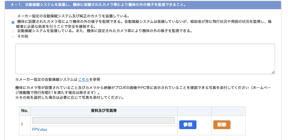 [4. 機体一般~]、[5. 遠隔操作の機体~]
