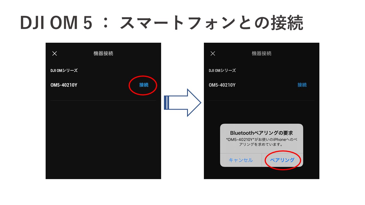次に行うのが、スマホと DJI OM 5 の Bluetooth接続です。