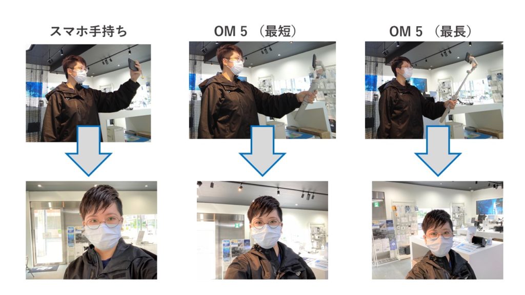 また、長時間セルフィーをやってみて思いましたが、スマホだけを長時間持っていると本当に手が疲れます。しっかり握れる OM 5 を使うことで、疲労軽減やスマホ落下防止になるのではないかと感じました。