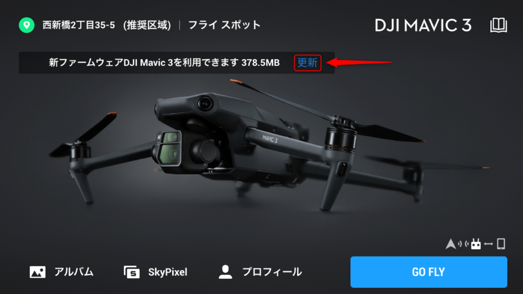 アクティベーション後に、ファームウェア(ドローンを動作させるためのソフトウェア)の更新通知が出ることがあります。コチラも最新のものにアップデートしておきましょう。