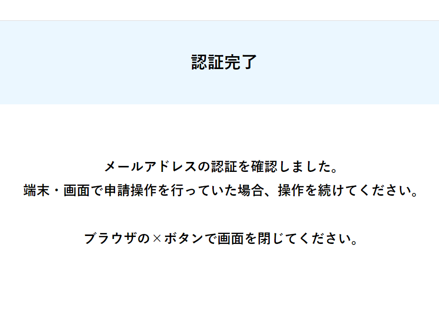 問題なく終われば、下記の画面が表示されます。元の画面に戻って、次の登録に進みましょう。