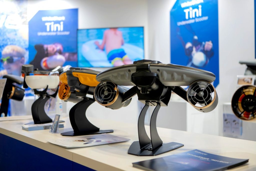 最近の売れ筋は水中スクーター 「WhiteShark MixPro(ホワイトシャーク ミックスプロ)」 で、イベント当日も多くの方がミニ水槽でそのパワーを体験したり、写真を撮ったりと注目度の高さがうかがえました。