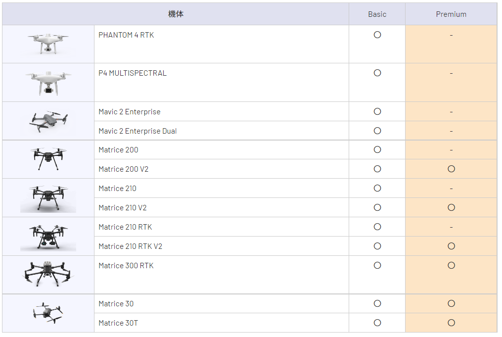 なお、Premium に[○]がついていない機種の場合は Basicプランのみの提供となります。