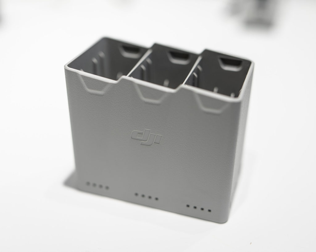 最大3本のバッテリーを装着し、1本ずつ順番に充電することができます。DJI 30W USB-C充電器を使用すると、標準バッテリー3本は、わずか3時間で、インテリジェント フライトバッテリー Plus 3本は、4時間で完全充電できるんですって。非常に効率的ですね。また、標準バッテリーと Plus版 の同時充電も可能なので、「付属の1本とキットの2本」という組み合わせで充電できるのは嬉しいですね。2WAYというのは、充電機能のほかに、モバイル電源としても使用できるという意味です。