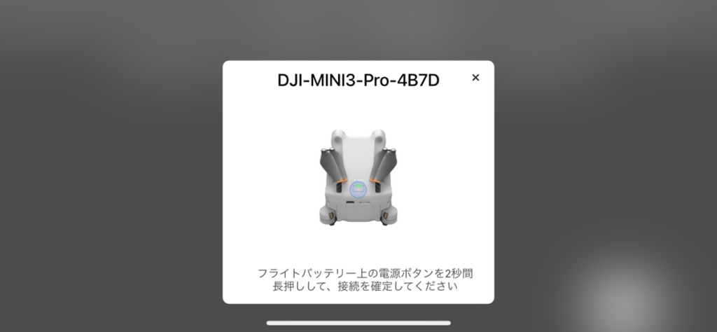 機体のリンクのため、電源ボタンを2秒間長押しするよう指示が出ます。指示通りにボタンを押してください。