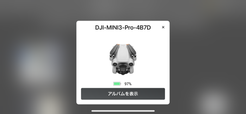 機体が接続されました。「アルバムを表示」をタップすると、MINI 3 Pro 内の撮影データにアクセスできます。
