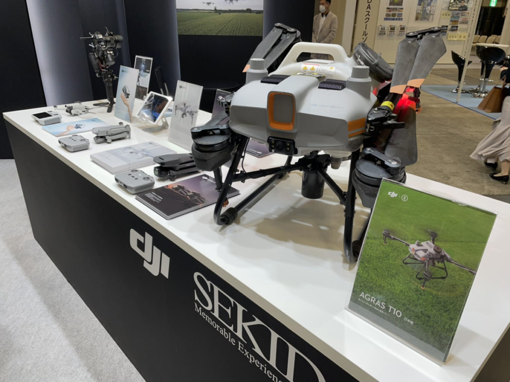 向かって右側の展示棚にはコンシューマー向けの Mavicシリーズ と、AGRAS T10 が展示されました。