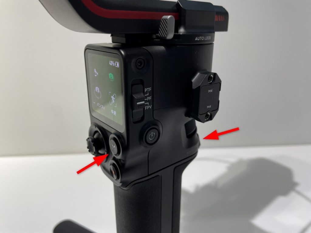 電源が入ったらMボタンとトリガーボタンを同時に3秒以上長押しし、オートチューンをかけます。