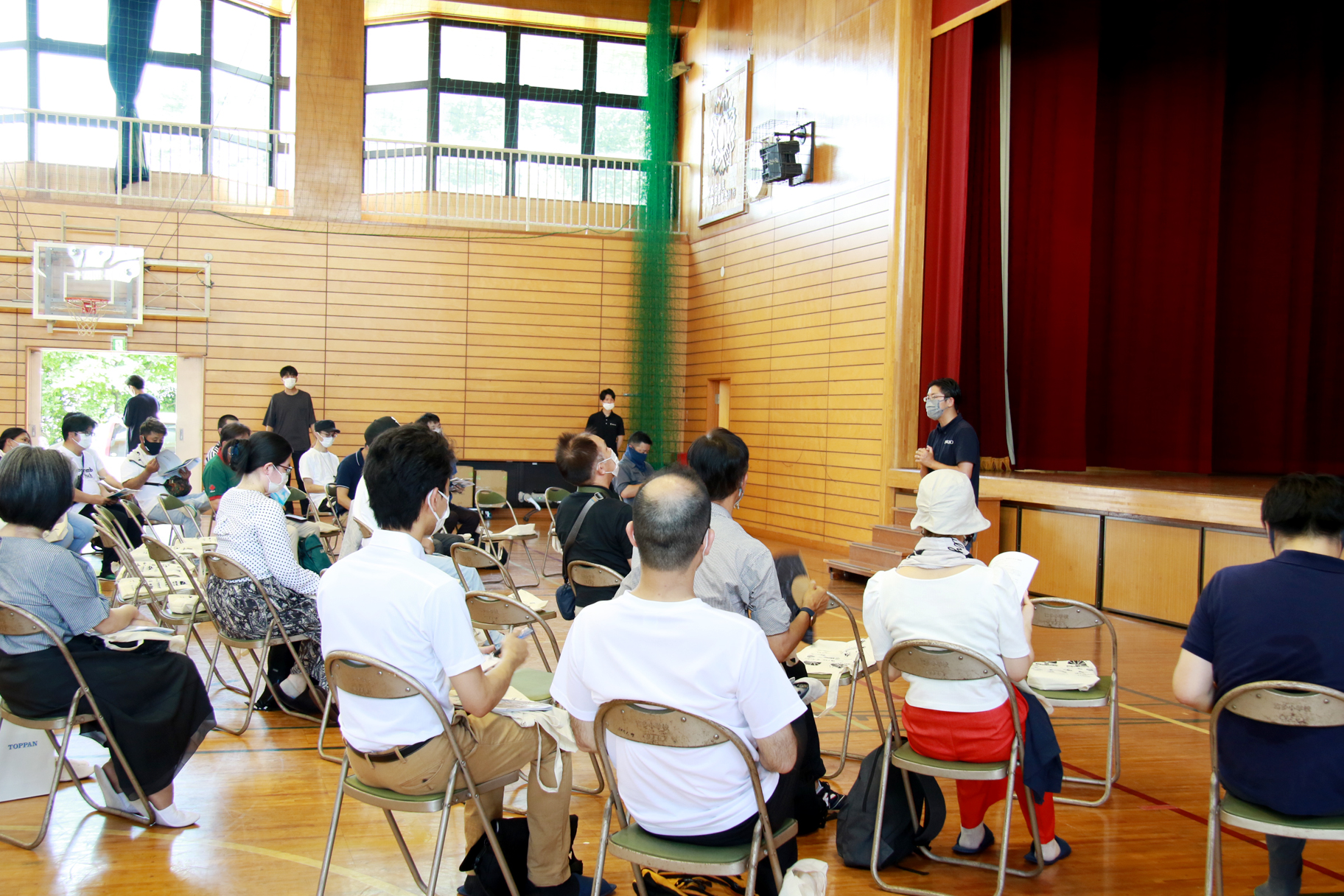 昇降口にお集まりいただいてから、体育館にてセキド農業チームからのご挨拶とツアー概要の説明です。この日はとても暑かったですね!春日部市は38℃超えていたんじゃないかと思います。