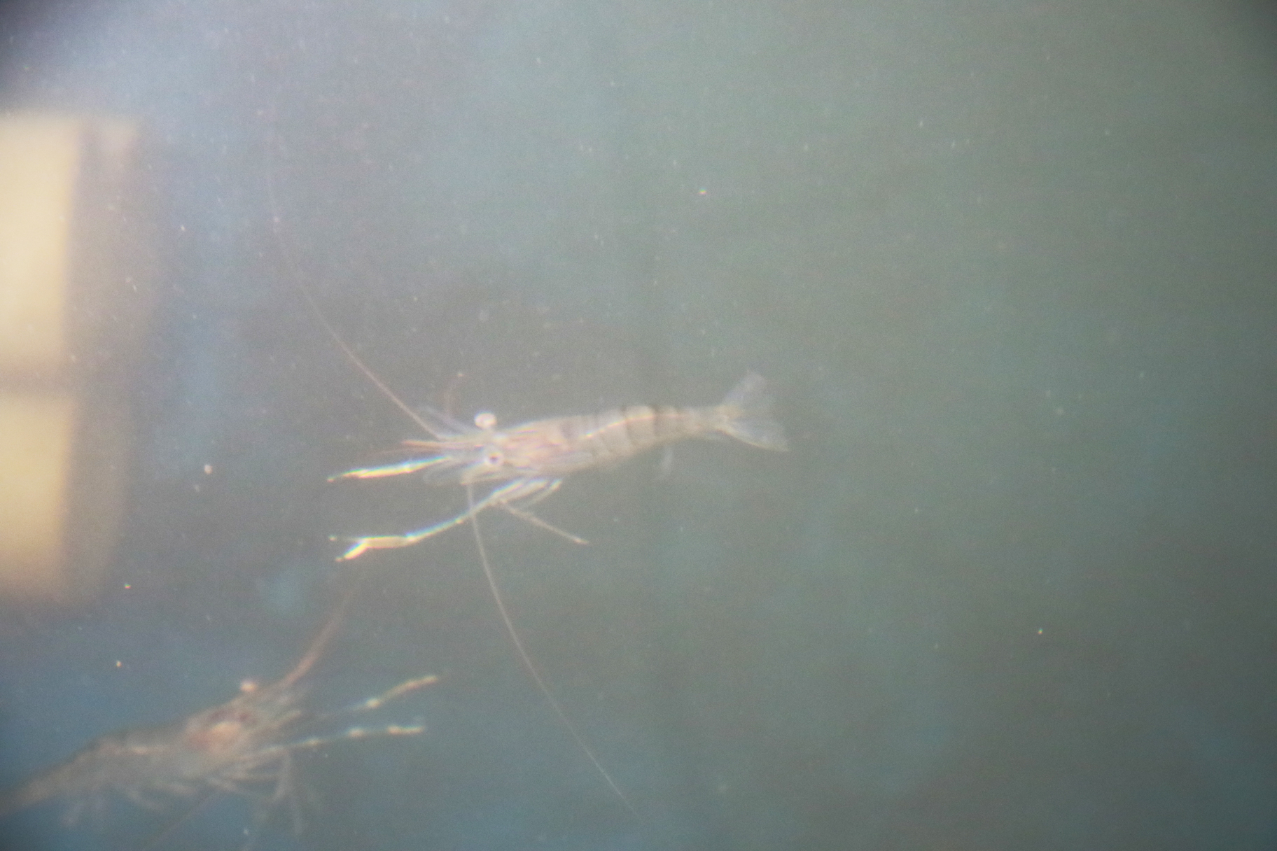 水道水を一晩おいてカルキをざっと抜いたあと、こちらの装置でプランクトンによるろ過をしていき、鬼手長エビが成長できる環境を作っています。ちなみに稚エビは専門の業者から買い付けることができます。成長した鬼手長エビはスーパーに並ぶこともありますが、フレンチなどの高級食材として取引されることが多く、良質なものはお寿司一貫分くらいの可食部量で数千円という世界だそうです。(この話が出た瞬間、参加者の目の色が変わったことを私は見逃しませんでしたよ)