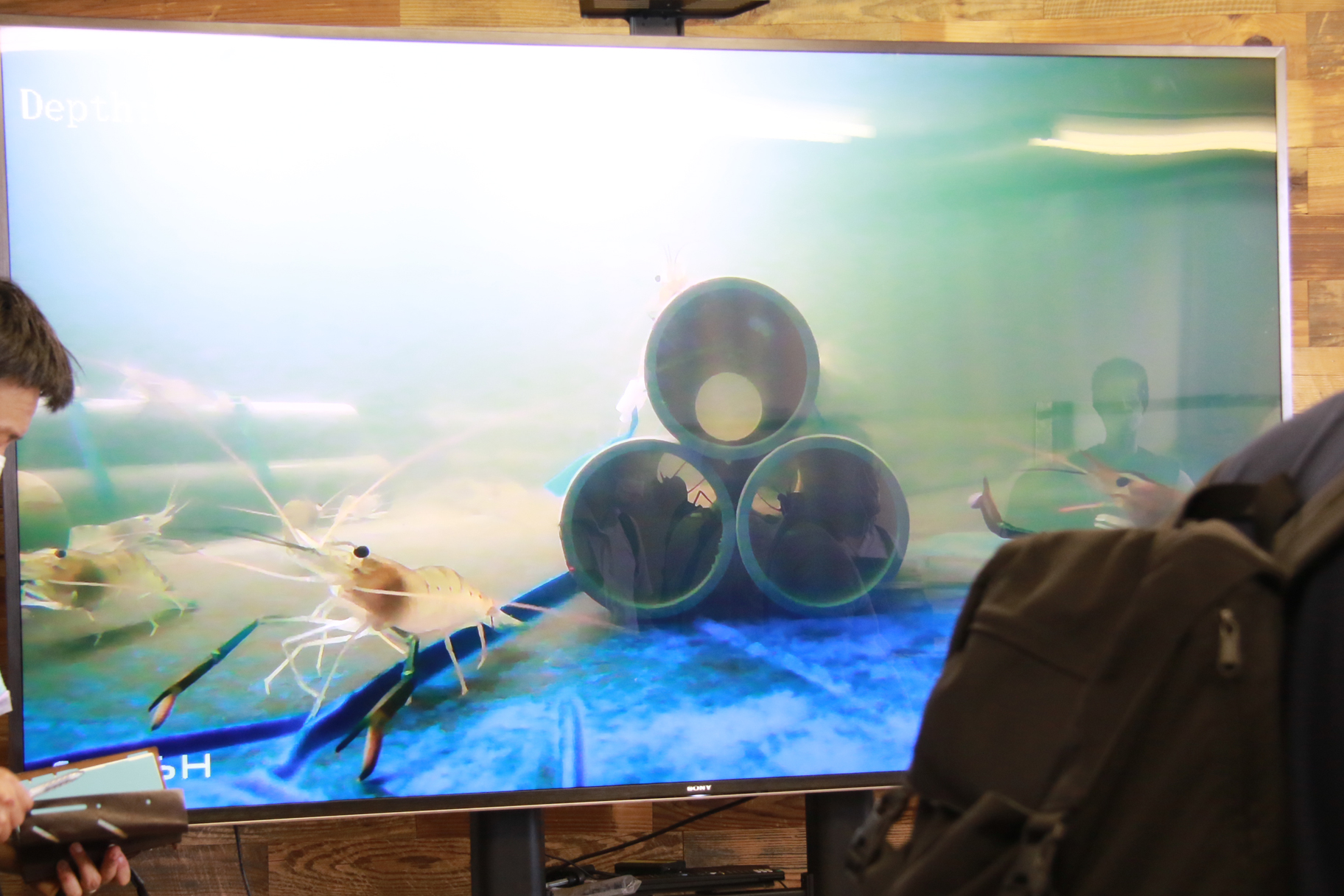 大画面に接続すると、こんな感じでかなり鮮明に、そしてリアルタイムで中の様子が見られます。生体の育成状況だけでなく、網の破れなども点検できますよ。