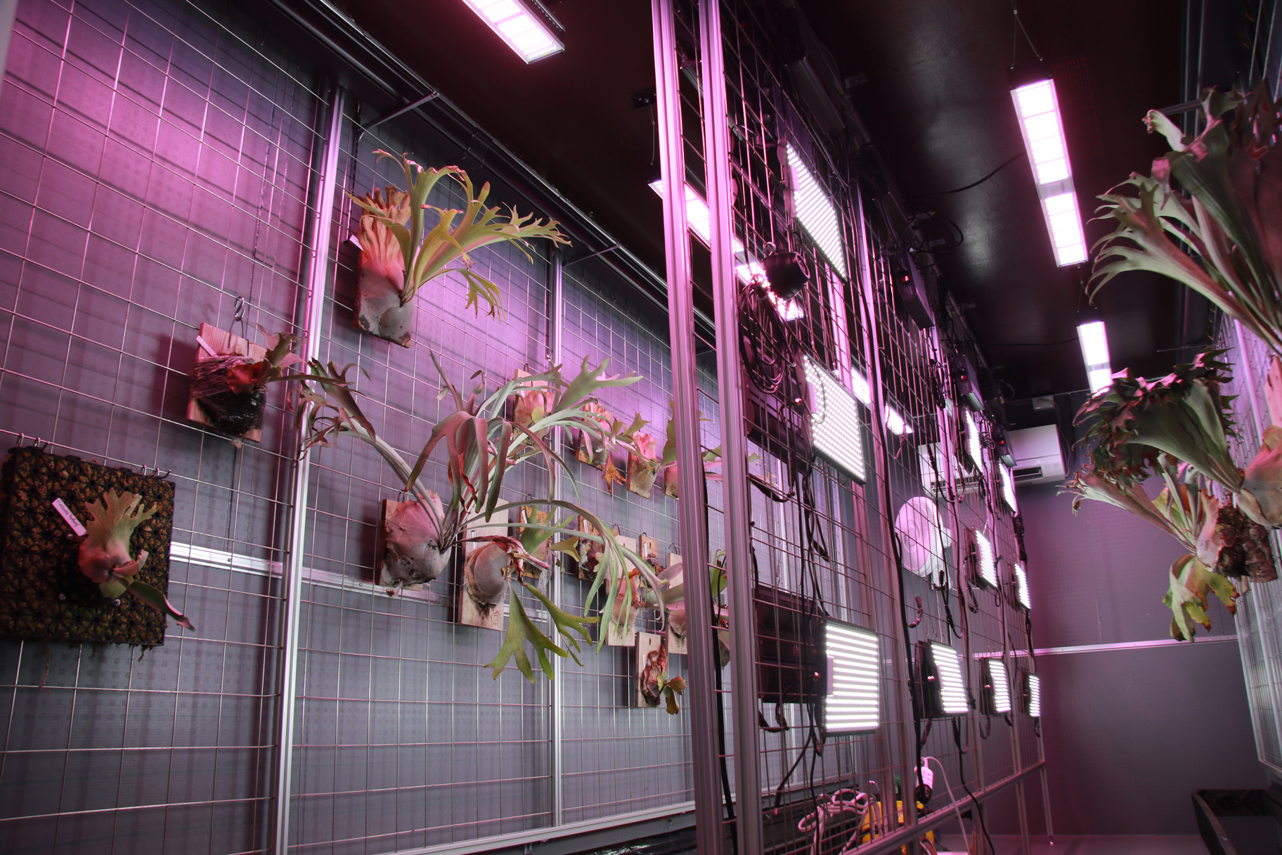 中はこんな感じのサイバーな空間で、太陽光発電によってLEDライトの照射と水が循環し、狭いスペースながら一つの環境を作り上げています。