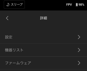 機器リスト:接続中のジンバル機器名とパスワード変更、ログインしているDJIアカウントでアクティベートしたジンバルのシリアルナンバーとアクティベーション日時の確認