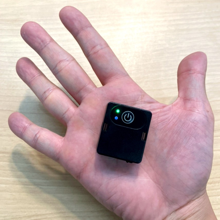 AERO-D-X1 は小型軽量で手のひらにのせられる 36.4mm×32mm×14mm、重さ11.5gのコンパクトな製品になっています。だいたい、SDカードと同じくらいのサイズになります!